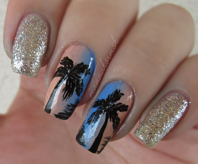 Imádom a pálmafás körmöket és kicsit sem unom még őket, remélem ti sem. Ma egy nem átlagos kombinációt hoztam nektek, amit ti is könnyen elkészíthettek. :)
